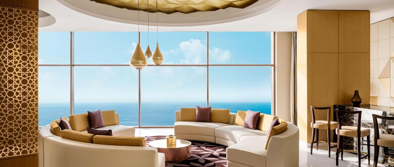 Fairmont Ajman is a 5-star beachfront hotel in United Arab Emirates. It features 252 guest rooms and suites and 8 restaurants and lounges along with an infinity pool, kid’s club and pool.